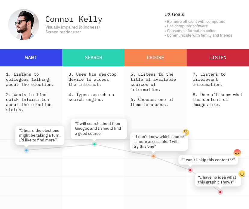 In order to understand how people with visually impairments use the web, I looked into accessibility tools, and according to WebAIM the most popular screen readers are:
