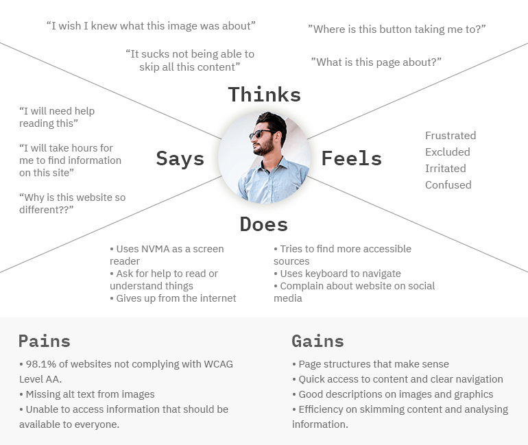 Do you know that 98.2% of the most popular websites don't achieve AA level of WCAG 2.1 compliance? This project aims to research and understand accessibility issues on the web, and design a solution to make the web a more accessible place for everyone.